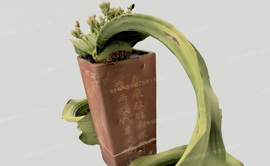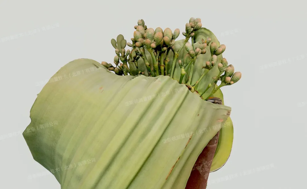 技术人员先以高精度三维扫描仪完成360°全域扫描,快速构建植株整体空间轮廓与基础点云模型,精准定位叶片褶皱边缘、茎干纹理、繁殖器官等关键特征区域。再使用蔡司三维扫描仪对花球等精细结构进行局部精细化采集,同步获取多角度高清纹理影像,确保模型细节完整、色彩与纹理还原精准。