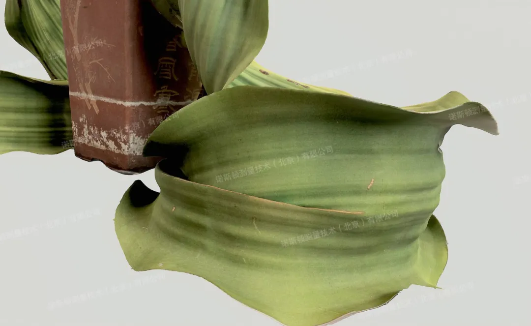 针对千岁兰匍匐生长、叶片宽大扭曲、表皮纹理细腻、雌球花结构精密等形态特点,现场提前制定专项扫描方案,有效规避温室环境反光、叶片轻微晃动、局部阴影等干扰因素,确保点云数据完整性与精度达标。