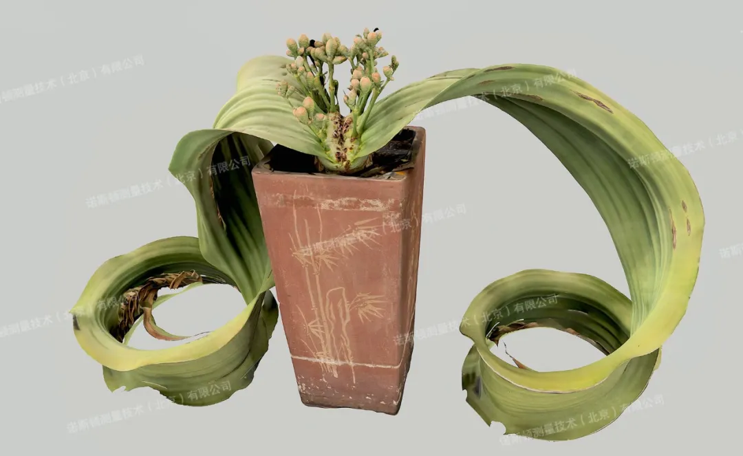 技术人员先以高精度三维扫描仪完成360°全域扫描,快速构建植株整体空间轮廓与基础点云模型,精准定位叶片褶皱边缘、茎干纹理、繁殖器官等关键特征区域。再使用蔡司三维扫描仪对花球等精细结构进行局部精细化采集,同步获取多角度高清纹理影像,确保模型细节完整、色彩与纹理还原精准。